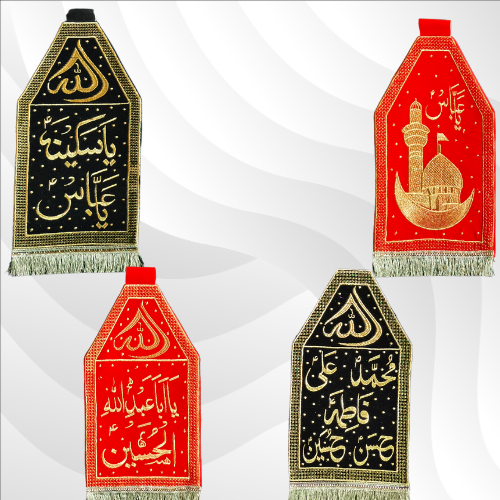 This beautifully crafted Alam Patka is designed to enhance the spiritual atmosphere of Azadari and Muharram commemorations. (Set of 4 peices)
