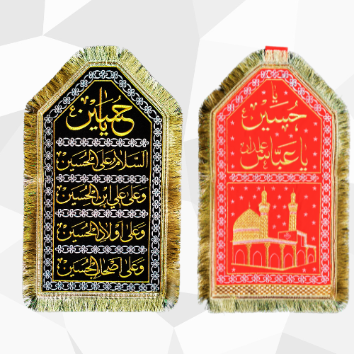Elevate the beauty of your Azadari rituals with this exquisite set of 2 Alam Patkas in bold Red and Black colors. Each piece is a symbol of devotion, adorned with Ya Hussain (ع), Ya Abbas (ع), and Ziyarat Imam Hussain (ع) in a highly decorative style. (Set of 2 pieces)
